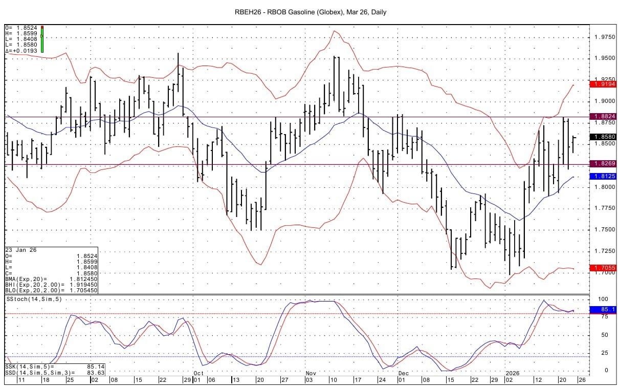 March RB support lies at 1.8261-1.8276. Resistance lies at 1.8808-1.8824. There is a double top from Wednesday/Thursday at 1.8800-1.8820.