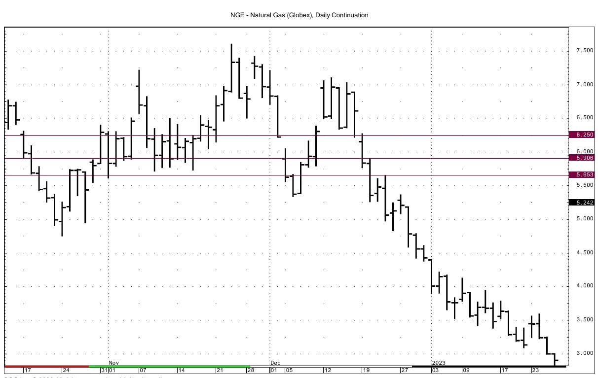 Natural Gas---February NG is up 14.8 cents at $5.193