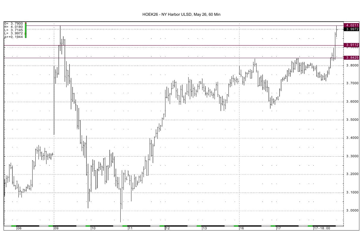 May ULSD resistance lies at the recent high at 4.0211. Support is seen at 3.9112-3.9126 and then at 3.8425-3.8441.