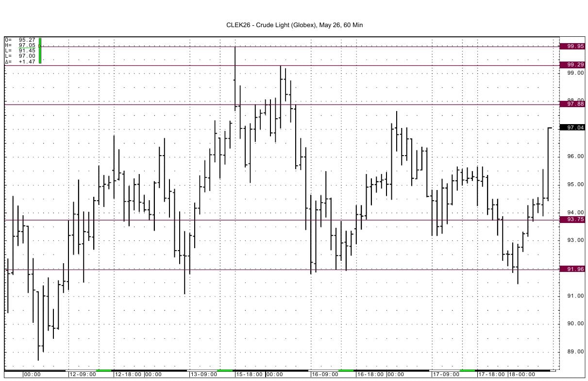 May WTI has resistance above at 97.68, and then at 99.29 and then at the recent high at 99.95. Support is seen at 93.69-93.77 and then at 91.86-91.96.