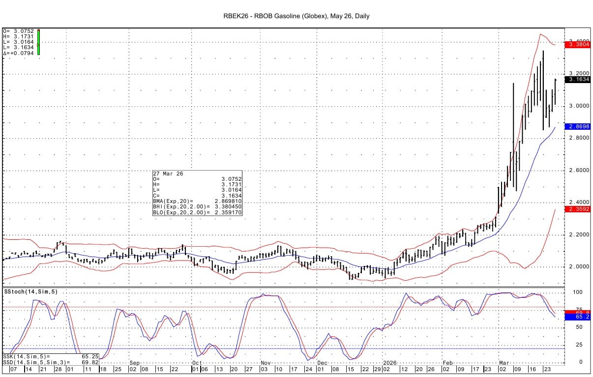 May RB support lies at 3.1264-3.1280 and then at 3.1075-3.1076. The overnight low is 3.0164. Resistance is seen at 3.2031-3.2049.