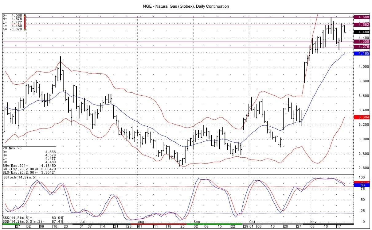 Natural Gas---December NG is down 4.4 cents at $4.506