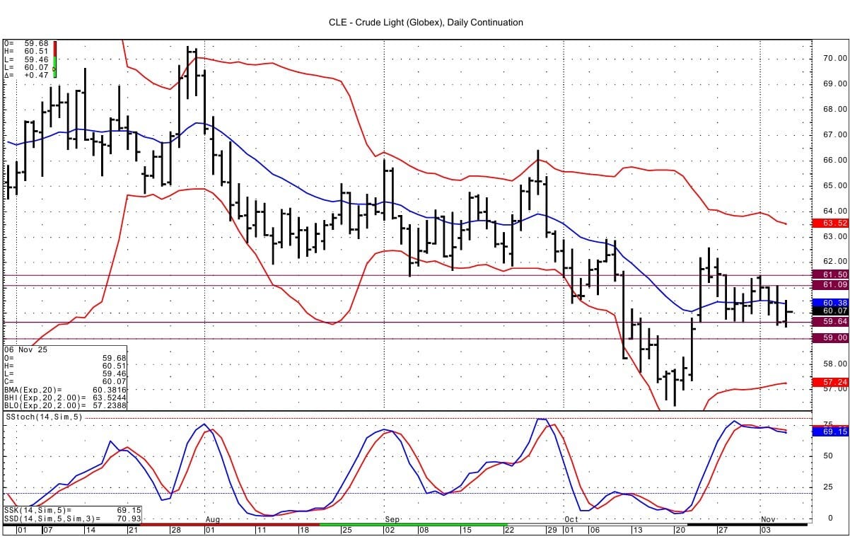 WTI spot futures still seem stuck in a sideways trading pattern. Support comes in at 59.00. Resistance lies at the highs from the prior 2 sessions at 61.03-61.09 and then at 61.50.