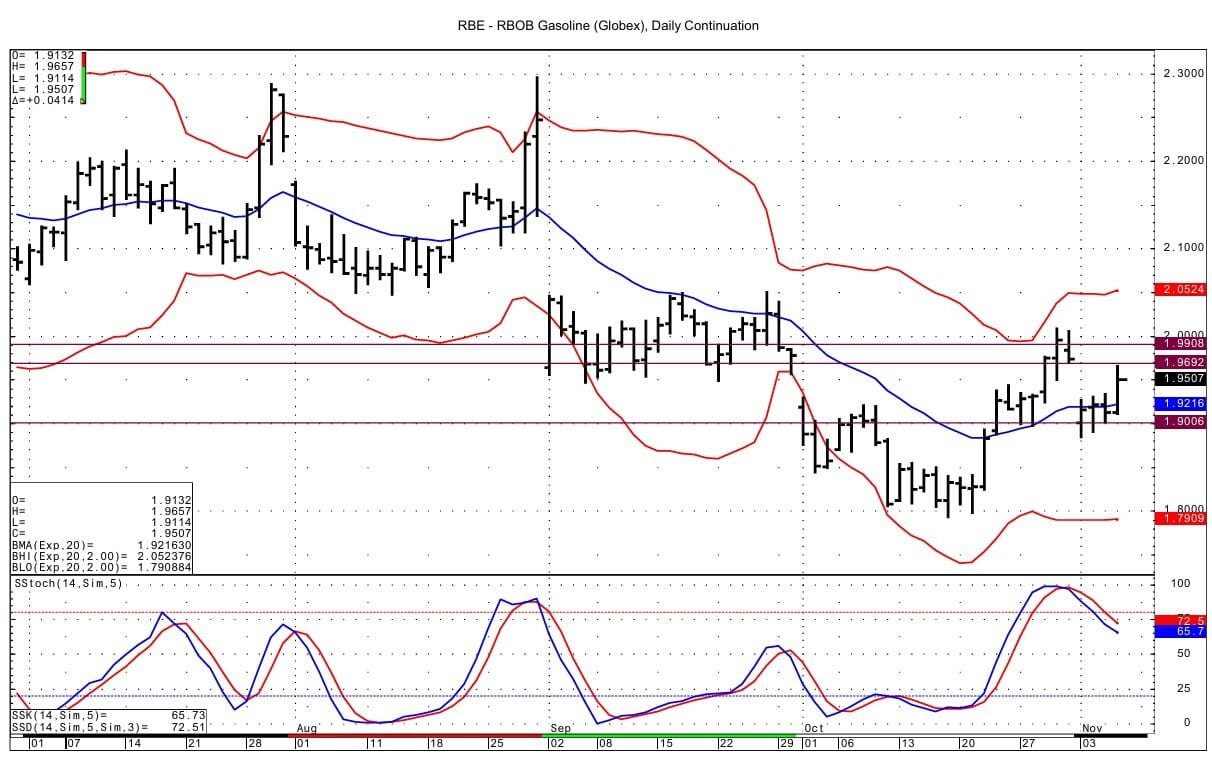 RB spot futures see resistance at the gap at 1.9680-1.9692 and then at 1.9901-1.9916. Support lies at 1.8990-1.9006.