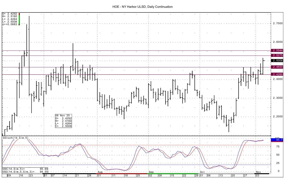 Today's strong uptick in HO/ULSD prices comes even as the FAA has signaled that U.S. airplane flights will be cut by 10% beginning Friday in 40 "high volume" markets, due to staffing issues by air traffic controllers amid the US government shutdown. (AP News)