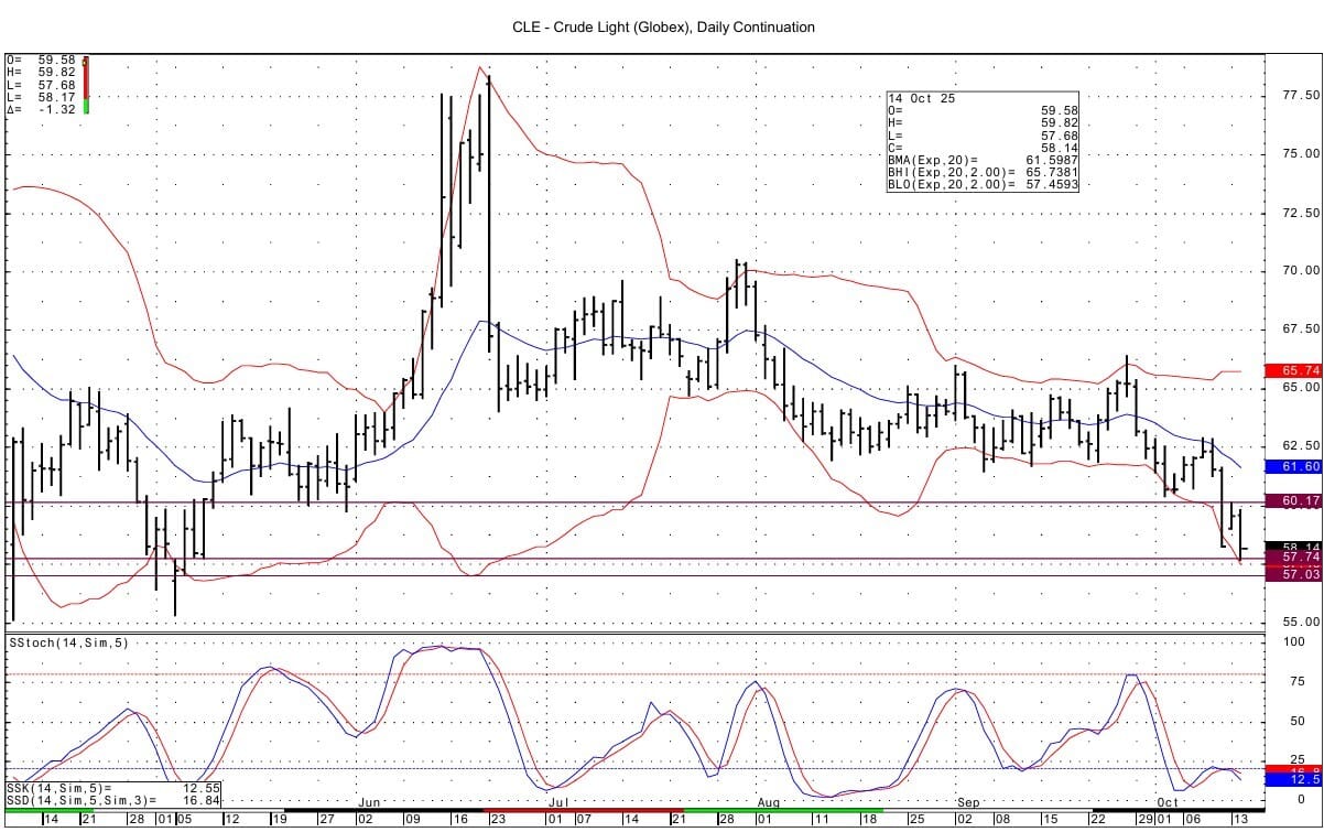 WTI support at 57.74-57.81 has been tested today with a low of 57.68. Light support below that lies at 57.03. Resistance comes in at 60.17-60.26.
