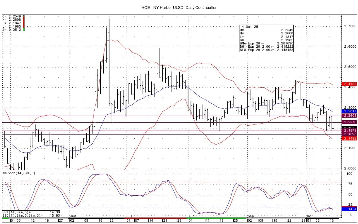 November ULSD sees its double top at 2.2600-2.2608. There is likely some resistance below that from prior lows at the 2.2278-2.2295 area. Support comes in at the lows from last Friday and mid-August at 2.1875-2.1879, that were tested today with a low of 2.1847. Below that support is seen at 2.1693.
