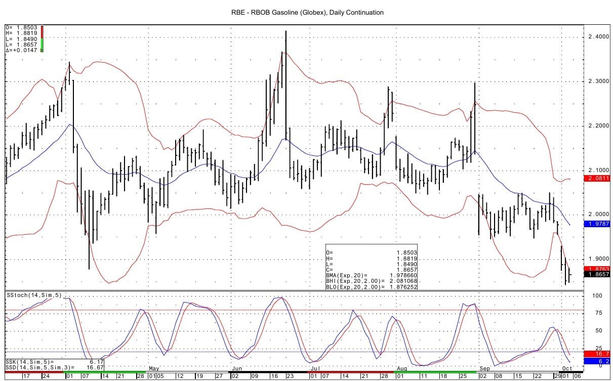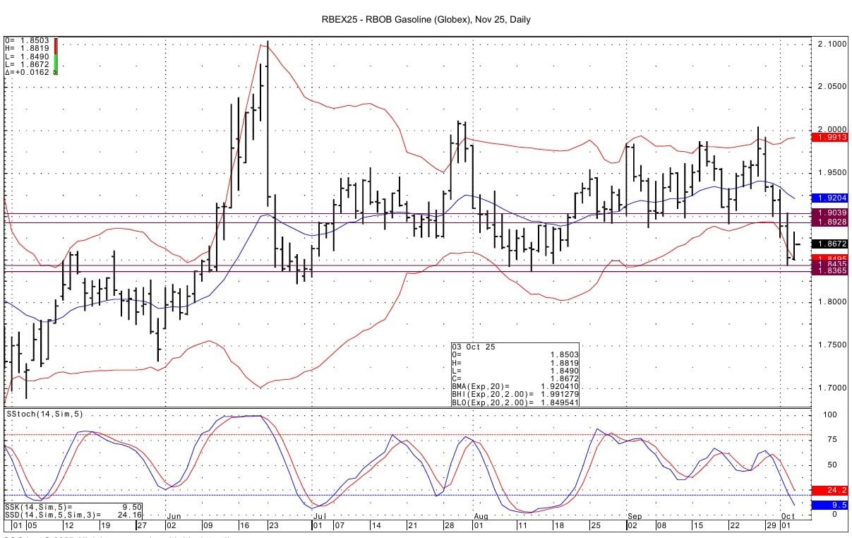 RB spot futures see support at 1.8420-1.8435 and then at 1.8355-1.8370. Resistance lies at 1.8928-1.8938 and then at 1.9039-1.9043. The DC chart lower bollinger band lies at 1.8763.