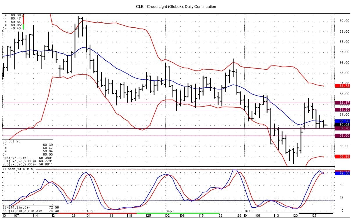 WTI spot futures have support at 59.64-59.70, which is yesterday's low. Below that support lies at 59.00. Resistance comes in at 61.4561.50 and then at 62.17-62.20.